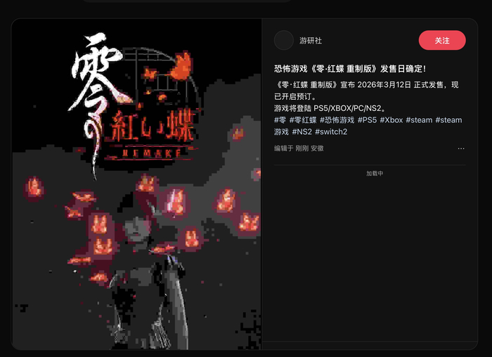 我社🍠网页版加载的瞬间,《零·红蝶 重制版》的封面变马赛克了,结果看着还挺对味的[哆啦A梦害怕]
