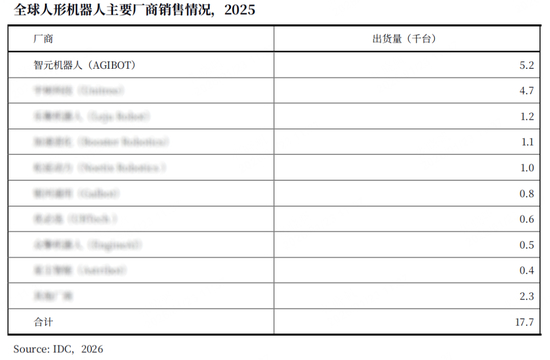 次日,多家媒体称,国际数据公司(IDC)当天发布的《全球人形机器人市场分析》显示,2025年全球人形机器人出货量达约1.8万台。中国厂商在本轮增长中占据主导地位,其中智元(AGIBOT)以全尺寸机型1300台的出货量“位居全球第一”。